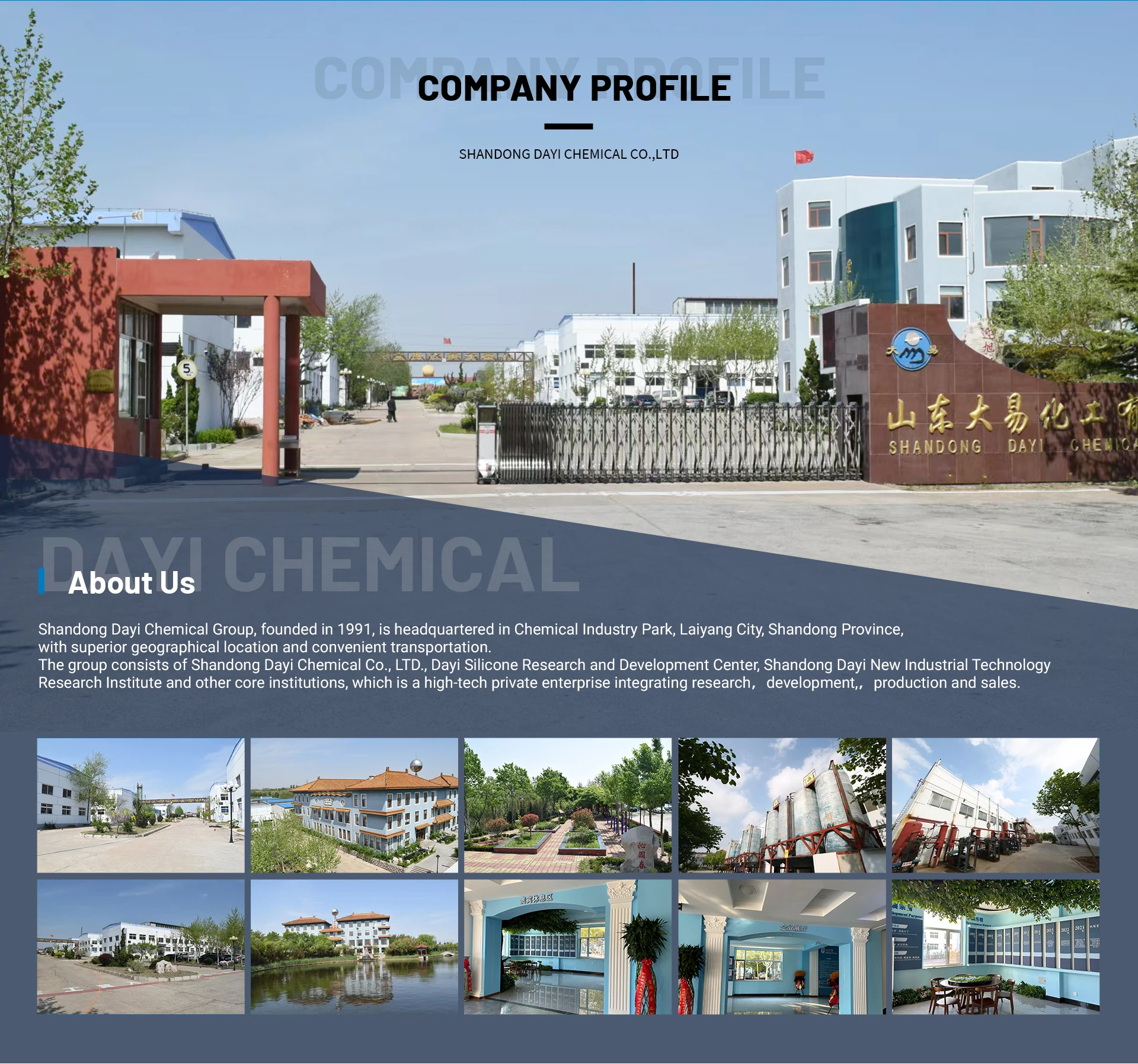 Shandong Dayi Chemical Co., Ltd. Main categories: Silicone Oil/MQ Silicone Resin/Polyethermodified Silicone Oil/Vinyl Silicone Oil/Silicone Grease/Silicone Rubber,MQ silicone resin,vinyl silicone oil,hydrogen silicone oil,polyether modified silicone oil